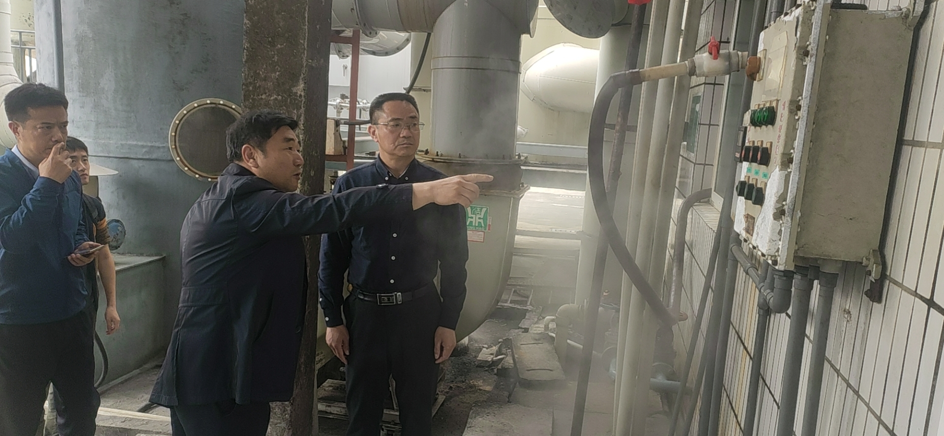 蔡總向市環(huán)保局領(lǐng)導(dǎo)介紹我司廢氣治理工況動(dòng)態(tài)在線監(jiān)測(cè)系統(tǒng)